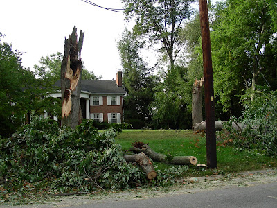 On Sunday, September 14th the remnants of Hurricane Ike blew across the mid-west and right through good 'ol Owensboro, Kentucky! We had sustained 50-90 mph winds for 2+ hours and the pix below show the aftermath. We were without power for 25 hours and we have family members who were without power for 3-4 days. The power still hasn't been restored to all parts of the city.